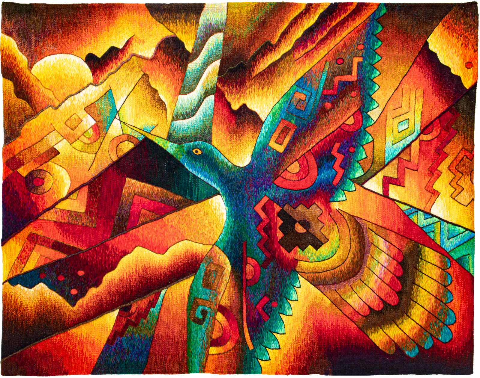 "The Flight of the Hummingbird," crafted by Constantino Laura, immerses us in a world of beauty and Andean symbols. In this artwork, the hummingbird is depicted soaring upward against a backdrop of a breathtaking sunset. Surrounding this scene are Andean iconographies that epitomize the rich Peruvian culture. The hummingbird, with its grace and agility, becomes a symbol of freedom and spiritual elevation, while the iconographies add depth and cultural significance to the composition. "The Flight of the Hummingbird" invites viewers to contemplate the majesty of nature and the richness of Andean cultural heritage.